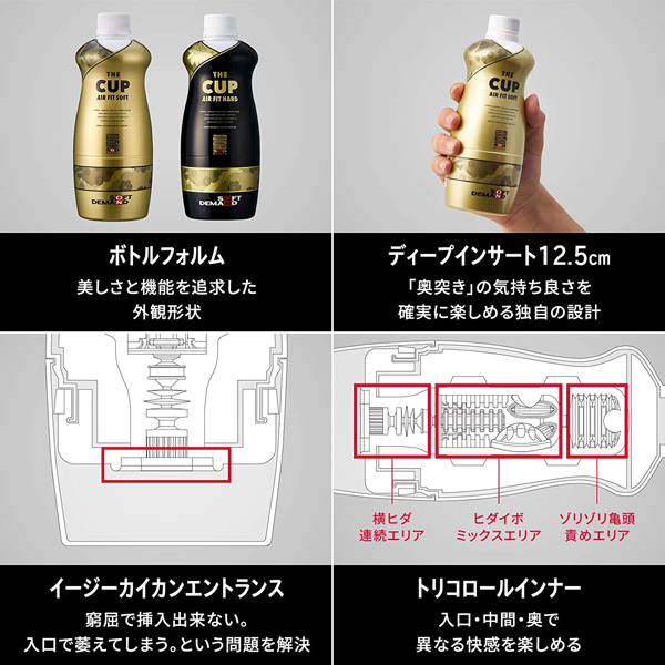 最高級ウレタンで包み込み、3種類の異なる快感ギミックで刺激!内部は奥まで突ける12.5cm設計で、根元のクッションは厚みをもたせることで、男性器だけでなく下腹部にも快感が伝わるようにしています。